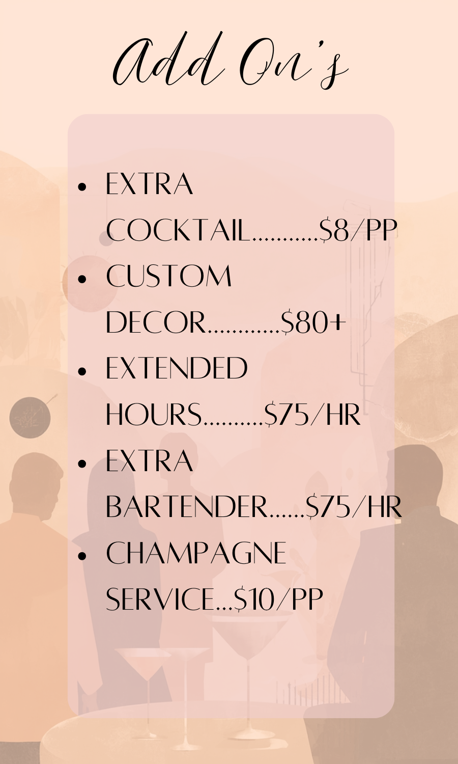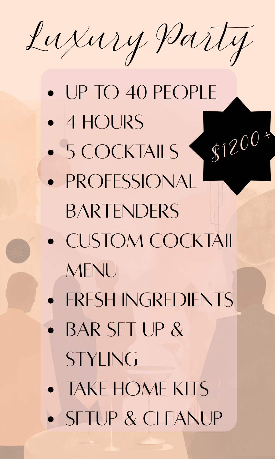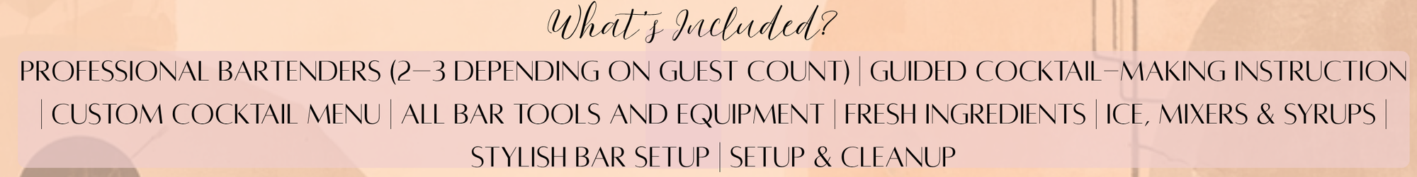 Enjoy a hands-on, interactive cocktail experience led by professional bartenders. You will learn to craft beautiful, delicious cocktails while having fun in a relaxed, social atmosphere.